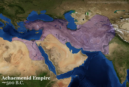 Ըստ արքայից արքա Դարեհի՝ Հելլադան աշխարհին ներկայանում է որպես սատանաների, կեղծ աստվածների, ստի, ահաբեկչության և սադրիչների հայրենիք: Հարկ է մաքրել նրանց տաճարները կեղծիքից և խաբեությունից: Ռոնալդ Ռեյգանը նույն կերպ էր բնութագրում Խորհրդային Միությունը սառը պատերազմի տարիներին` անվանելով այն "չարիքի կայսրություն”: Պարսկական մեծապետական էքսպանսիան ի վերջո հանգեցնում է Հելլադայի դեմ պատերազմի, որի նպատակը Աթենքի ոչնչացումն էր: Դարեհի որդին` Քսերքսեսը, ավելի կոնկրետ էր իր արտահայտություններում, երբ արշավանքից առաջ դիմում է իր զորքին. "Արևը չի ծագելու մեզ սահմանակից որևէ երկրի վրա, քանի որ բոլոր այդ երկրները, Եվրոպան նվաճելուց հետո, ես մեկ երկիր եմ դարձնելու` ձեր երկիրը”: