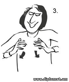 3. Կրծքերի ուրվագծում: Ձեռքերն ասես ուրվագծում են կնոջ կրծքի ձևը: Այս ժեստի իմաստը բացատրության կարիք չունի. այն տարածված է ամենուրեք: