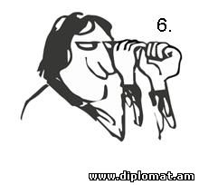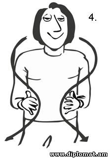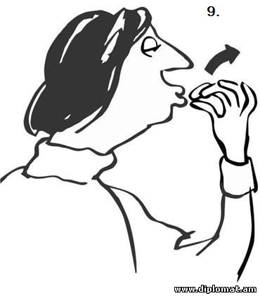 ԱՐՄԱՆ ՆԱՎԱՍԱՐԴՅԱՆԱրտակարգ և լիազոր դեսպան ![]() Նախորդ հոդվածում դուք տեսաք, թե ինչպես մատի մեկ ազդանշանն ունի տարբեր նշանակություններ: Մինչդեռ տարբեր ազդանշաններ տարբեր էթնոսներում կարող են արտահայտել նույն միտքը, որը հասկանալի է աշխարհի բոլոր երկրներում, ամենքի համար: Խոսենք կոնկրետ փաստերով: Դուք դժվար թե գտնեք նորմալ մի տղամարդու, որը չհիանա կնոջ գեղեցկությամբ` ինչ ազգի ներկայացուցիչ էլ լինի: Հիմա պատկերացրեք հետևյալը: Փողոցում շարել են տարբեր ազգություններ ներկայացնող 12 տղամարդու և զգուշացրել, որ նրանց առջևով անցնելու է գեղեցիկ ու երիտասարդ կին: Փորձարկվողներին արգելված է բարձրաձայն կարծիք հայտնել նրա մասին կամ հաճոյախոսել: Իրենց զգացմունքները նրանք պետք է արտահայտեն միայն մարմնի ժեստերի ու ազդանշանների օգնությամբ: Կնոջ գեղեցկությամբ զմայլված տղամարդկանց տեսարանը ներկայացնում է ոչ վերբալ հաղորդակցության խոշորագույն մասնագետ, բրիտանացի Դեսմոնդ Մորիսը: Մենք էլ մեր հերթին այն ներկայացնում ենք ձեր ուշադրությանը. 1. Մատներով շոյում է դեմքը: Մի ձեռքի ցուցամատով և բութ մատով դիպչելով այտոսկրներին` տղամարդը մատներն իջեցնում է մինչև ծնոտը: Դա խորհրդանշում է գեղեցիկ կնոջ հարթ ու ձվաձև երեսը: Այս նշանն առաջին անգամ երևան է եկել Հին Հունաստանում, որտեղ այդ տիպի դեմքը համարվել է կնոջ գեղեցկության իդեալ: Այսօր էլ այդ դեմքով կանայք շատ հարգի են Հունաստանում, ինչպես նաև Իտալիայում և Իսպանիայում: 2. Մատը` այտին: Ցուցամատը սեղմված է այտին, կարծես փորձում է ծակել այտը: Գոյություն ունի այդ ժեստի մեկնաբանության երկու վարկած: Առաջին` կինը շատ «քաղցր է», և տղամարդն ուզում է ծակել այտն ու համտեսել մատի օգնությամբ: Երկրորդ` ակնարկում է կնոջ այտի հմայիչ փոսիկը: Ժեստը տարածված է Իտալիայում` ներառյալ Սիցիլիան և Սարդինան, այլ երկրներում հազվադեպ է հանդիպում: 3. Կրծքերի ուրվագծում: Ձեռքերն ասես ուրվագծում են կնոջ կրծքի ձևը: Այս ժեստի իմաստը բացատրության կարիք չունի. այն տարածված է ամենուրեք: 4. Կոնքերի ուրվագծում: Ձեռքերը շարժվում են կորագծով` ուրվագծելով կնոջ իրանը` չափազանցելով գոտկատեղի բարակությունը և կոնքերի լայնությունը: Հատկապես տարածված է անգլիախոս երկրներում: 5. Ձեռքը հպվում է աչքին: Տղամարդը ցուցամատը մոտեցնում է ներքին կոպին և մի փոքր ձգում վար: Այս ժեստը հանդիպում է շատ երկրներում և ունի մի քանի նշանակություն: Սակայն որոշ տարածաշրջաններում, օրինակ, Լատինական Ամերիկայի մի քանի երկրներում և Իտալիայի մի շարք մարզերում այն պարզ ազդանշան է` անցնող կինը զմայլանքի առարկա է: 6. Հեռադիտակ երկու բռունցքով: Տղամարդը նայում է կնոջը ոչ ամուր փակված բռունցքների միջով: Տարածված ժեստ է, արժե այդ կնոջը նայել մոտիկից: 7. Մատները ոլորում են բեղերը: Դեմքի մոտ տղամարդը բթամատով և ցուցամատով ոլորում է երևակայական բեղի ծայրը: Այս ժեստն ընդգծում է գեղեցկանալու ցանկությունը` հմայիչ կնոջ հետ ծանոթանալուց առաջ: Հնագույն իտալական ազդանշան է, որը պահպանվել է, չնայած մեր օրերում տղամարդիկ հազվադեպ են պահում փարթամ բեղեր: 8. Ձեռքը` սրտին: Տղամարդն աջ ձեռքի ափը դնում է սրտին: Մոտիկ քայլող կնոջը շշնջում է. «Ախր այնքան գեղեցիկ ես, որ սիրտս սկսեց արագ բաբախել»: Տարածված է անգլիախոս երկրներում և Լատինական Ամերիկայում: 9. Մատների ծայրերը դիպչում են շրթունքներին: Տղամարդը համբուրում է մատների ծայրերը, հետո դրանք հեռացնում է իրարից և համբույրն ուղղում կնոջը: Հիմնականում տարածված է Ֆրանսիայում և այլ երկրներում 10. Օդային համբույր: Տղամարդը համբուրում է օդը և ձգում շրթունքները կնոջ կողմը: Հատուկ է անգլիացիներին: Օդային համբույրը գոյություն ունի նաև Ռուսաստանի և Հայաստանի երիտասարդո
