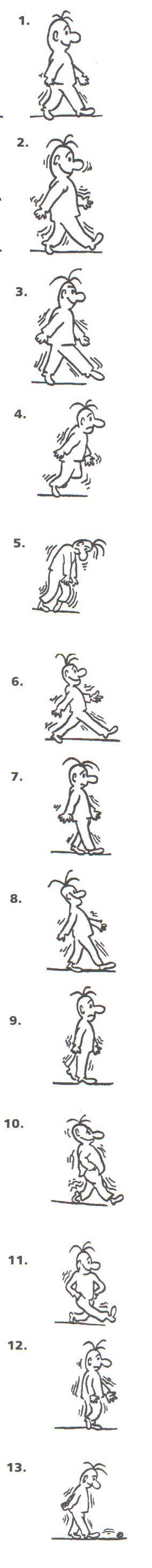 1.Ռիթմիկ քայլվածք: Լարվածությունը և թուլացածությունը ռիթմիկ կերպով հաջորդում են իրար, շարժումները սահուն կերպով անցնում են մեկը` մյուսին: Բարձր տրամադրություն: Կայտառություն: Կարող է հեշտությամբ, առանց պատճառի փոխակերպվել արագ տեմպի: