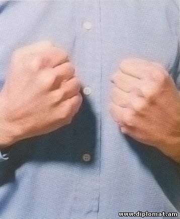 ԱՐՄԱՆ ՆԱՎԱՍԱՐԴՅԱՆԱրտակարգ և լիազոր դեսպան Վաղնջական ժամանակներից, երբ ցեղերը հանդիպել են կռիվը դադարեցնելու կամ համագործակցելու նպատակով, նրանց բանախոսները նախ առաջ են պարզել դատարկ ձեռքերը` ցուցադրելով բաց ափերը, որն ազդարարել է` «Տեսեք, մենք անզեն ենք»: Աղոթելիս հավատացյալը դիմում է Աստծուն բաց ափերով: Բաց ափերն ազնվության, անկեղծության, ինքնախոստովանանքի և այլ դրական զգացմունքների արտահայտություն են, ինչ դիրքով էլ որ լինեն ձեռքերը: Պատկերված ժեստը կոչվում է բաց ժեստ: Այս դեպքում զրուցակիցը տեսնում է ձեր ափերը: Բաց ափերը` շիտակության և անկեղծության նշան է: Դա բարյացակամության և բարեկամության ժեստ է, որը ծնում է վստահություն: Մարդը տալիս և վերցնում է բաց ձեռքով, ազդարարելով. «Ես պատրաստ եմ ազնիվ հաղորդակցության»: ![]() Իսկ երբ ձեռքերի դիրքը փոխվում է և ափերը չեն երևում, մենք տեսնում ենք դաստակի հակառակ կողմը, որը նշանակում է. մարդն ինչ-որ բան թաքցնում է: Դա կարող է լինել վախի, անվստահության կամ ծածկամտության հետևանք: Բոլոր դեպքերում այդ ժեստը ստեղծում է ճեղքվածք զրուցակիցների միջև: Նույնն է կատարվում, երբ ձեռքերը սեղանին են, բազկաթոռի արմնկակալին կամ թաքնված են սեղանի տակ: Բաց ափերով բարձրացած ձեռքերն ասես թեթևակի դիպչում են զրուցակցի արմուկներին և հրավիրում. «Նստեք, խնդրում եմ»: Միանգամայն այլ կերպ է ընկալվում նույն առաջարկը, եթե այդ շարժման ժամանակ ափերը նայում են վար` հատակին: Բարեկամական «խնդրում եմ»-ը փոխակերպվում է «Նստե՛֊֊֊֊֊ք», հրամայականի: Ժեստը` վեր ուղղված դաստակով միշտ արտահայտում է տիրելու և իշխելու ցանկություն: Այն կարծես դիմացինին սեղմում է գետնին, փոքրացնում և նսեմացնում է նրան: Հիշեք քաղաքական գործիչներին և լիդերներին, ովքեր կոչ են անում մարդկանց հանգստության և հնազանդության` օգտագործելով նշված ժեստը. «Հանգի՛ստ»: Սա ոչ թե համեստ ժեստ է, այլ միանշանակ` հրաման: Մենք վերը նշեցինք, որ ուսանողները իրենց չսիրած դասախոսի նկատմամբ զզվանքն արտահայտում են սեղանի տակ բռունցք կազմելով: Ընդհանրապես, բռուցքն ագրեսիայի, բարկության և ֆրուստրացիայի ազդանշան է, որի շնորհիվ մեր մարմինը փոխում է իր դիրքը: Ենթագիտակցությունը վայրկենաբար գրանցում է նման փոփոխությունը և պարտադրում է պատասխանել ագրեսիային: Այստեղ խոսում է հնուց եկող և ի սկզբանե մեր ժառանգած պաշտպանական բնազդը: Խորամանկելու, դիմացինին խաբելու, նրանից օգուտ քաղելու մտքեր է արտահայտում ափերի շփումը: Եթե բանակցությունների ժամանակ դուք ստանում եք այդ ազդանշանը, զգուշացեք և ավելի ուշադիր եղեք առաջադրվող պայմանները քննարկելիս: Աշխարհի որ անկյունում էլ հանդիպեք խեղճացած դեմքով և ձեռքի ափով փորը շփող մարդու` առանց սխալվելու հավանականության կարող եք ասել, որ նա քաղցած է կամ ցավ ունի: Երկրից երկիր մարդու ֆիզիոլոգիական հատկությունները չեն փոխվում: Մարդն ամենուր մարդ է:![]() Կրծքին խաչաձևած ձեռքերը հիմնականում պաշտպանական կամ ագրեսիայի ազդանշան է: Մարդը «փակ» է շրջապատի համար և պատրաստ է դիմադրել, բացառված չէ` հարձակվել: Բացառված չէ նաև, որ նա ձանձրանում է կամ պարզապես մրսում է: Իսկ եթե նայում է կողք, առանց սխալվելու կարող ենք ասել, որ մեր զրուցակցի էմոցիաները բացասական են: Բոլոր դեպքերում մենք կայքի այցելուներին խորհուրդ չէինք տա օգտվել ձեռքերը (նաև ոտքերը) խաչաձևելու սովորությունից, որը միայն կարող է խոչընդոտել հաջող հաղորդակցվելու գործընթացը: Կայքի «Մարդկային հաղորդակցություն» բաժնում մենք պատահաբար այսքան երկար կանգ չառանք «Ձեռքը» թեմայի վրա: Բանն այն է, որ բուռն կերպով զարգացող ոչ վերբալ հաղորդակցության ուսումնասիրության մեջ մեծ տեղ է հատկացվում դեմքին, և համեմատաբար 